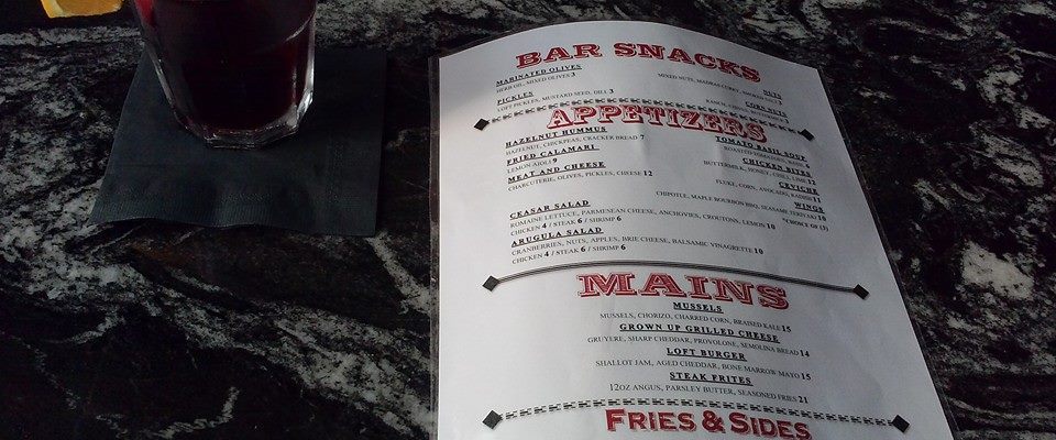 Presenting the latest Loft 142 menu! As I mentioned in my last post about my new favorite neighborhood bar, the menu has been going under some updates and revisions. I stopped in today for my customary happy hour sangria and my bar pal Danielle happily informed me about their menu. Her excitement was contagious and I immediately texted a couple of friends with the news. Listed among the additions are Steak Frites, Grown Up Grilled Cheese, and Fried Calamari. Enjoy any of these every day of the week.