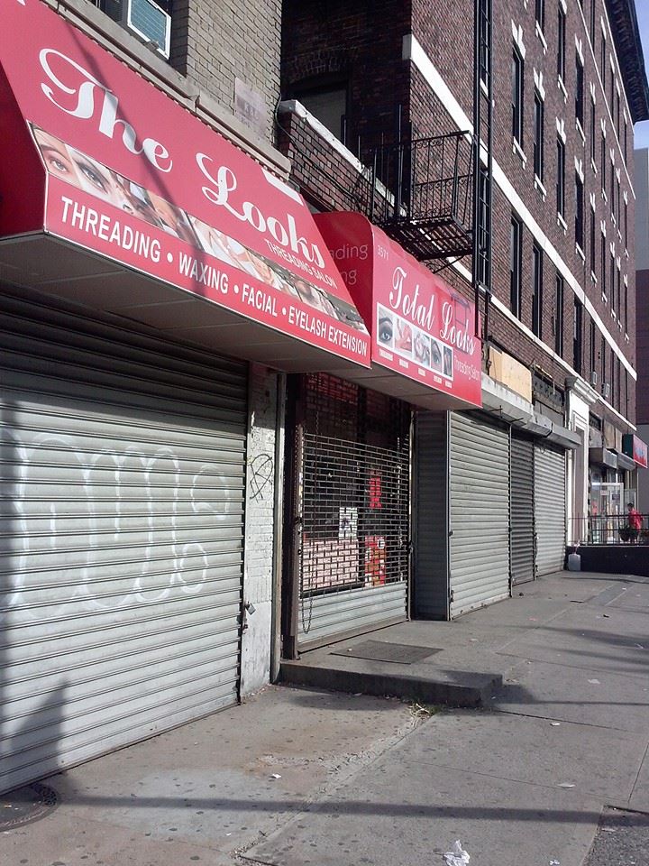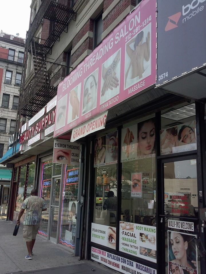 Local beauty salons abound along Broadway but the ones that draw my eye on my regular commute to work just opened in the past two years and are all between 146th and 147th. Part of the draw is the woman dutifully offering me a info card every time I walk by and the other part is “look over here” store front color scheme of red and hot pink. Total Look, The Looks Threading Salon, and Blooming Threading, each with different owners despite an almost identical look between two of them, offer threading, eyelash extensions, waxing, bleaching, and facials. As of today, the combined Yelp reviews for The Looks and Blooming Threading add up to 15 (8 and 7 respectively), with both salons boasting grand scores of 4.5/5 stars. Repeated attempts to find a Yelp page, or any page for that matter, for Total Looks were in vain.